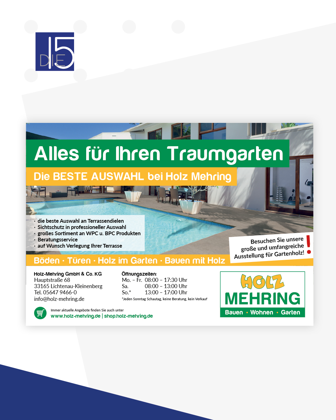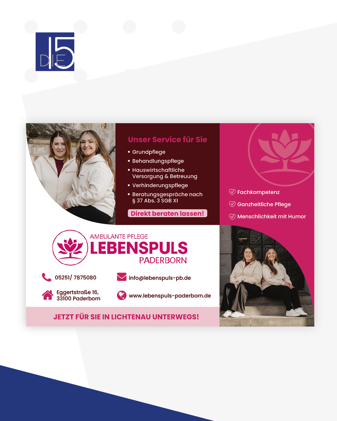 Als Herausgeber des Stadtmagazins DIE15 bieten wir Unternehmen, Dienstleistern und Vereinen aus Lichtenau und Umgebung die Möglichkeit, ihre Angebote gezielt zu präsentieren.