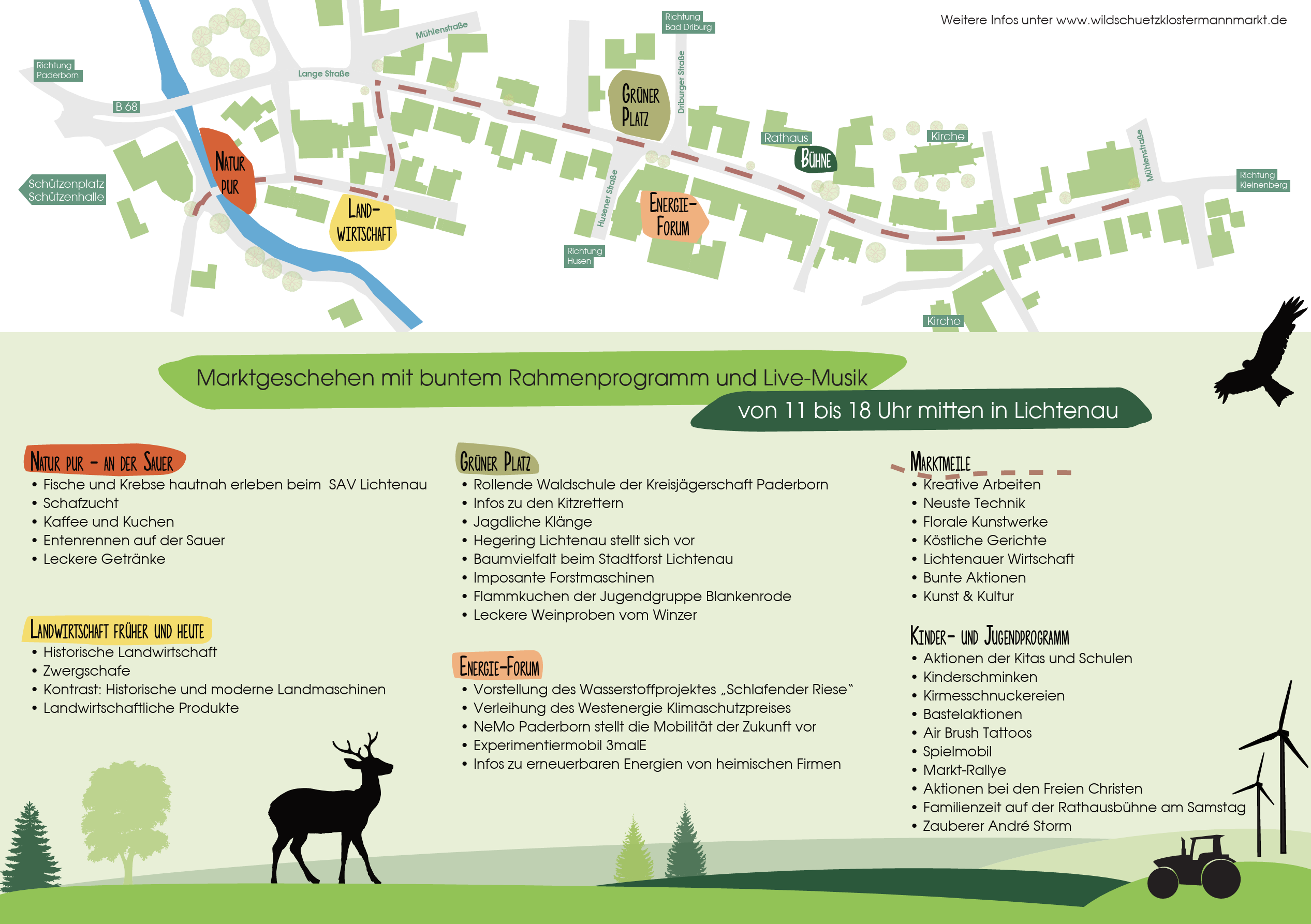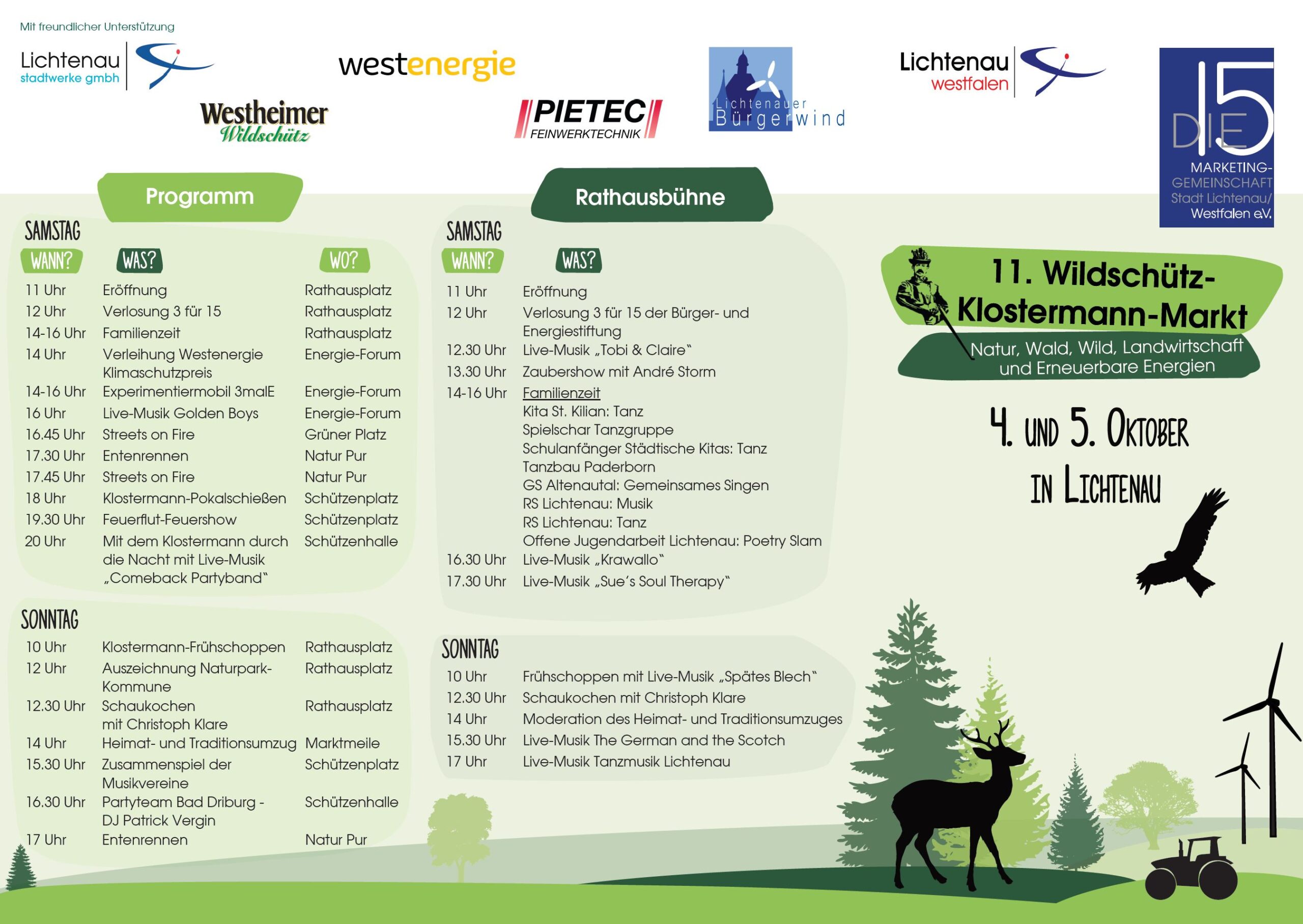 Am 04. und 05. Oktober verwandelt sich die Lichtenauer Stadtmitte jeweils von 11 bis 18 Uhr wieder in eine lebendige Marktmeile mit buntem Rahmenprogramm rund um die Themen Natur, Wald, Wild, Landwirtschaft und Erneuerbare Energien.